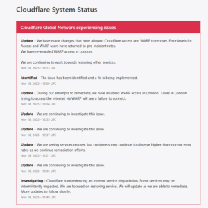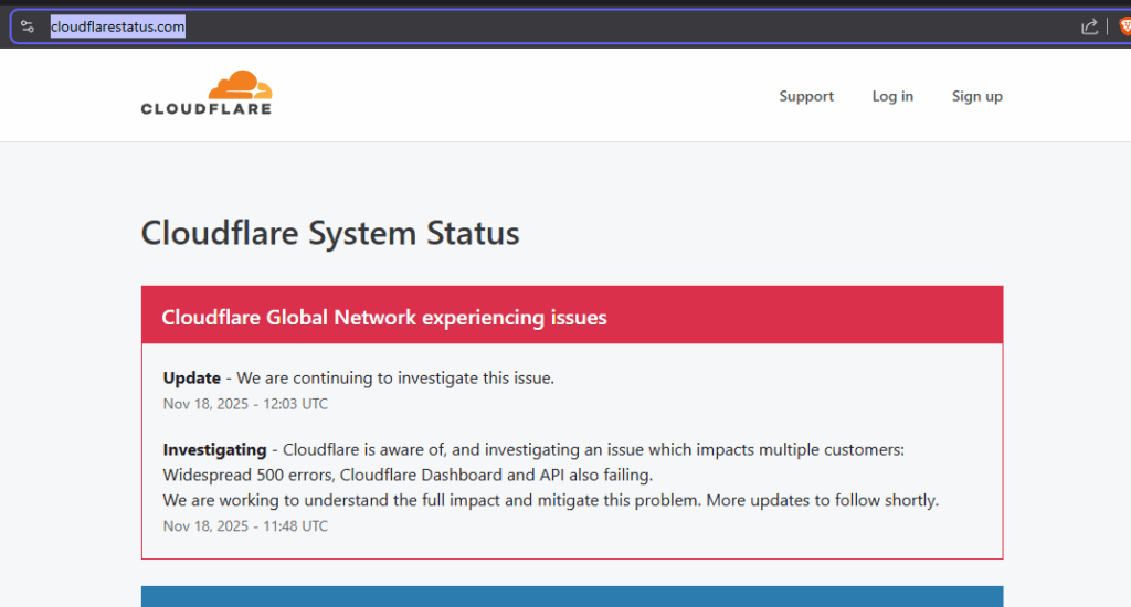Today, November 18, 2025, our hosting provider Cloudflare experienced a major global outage. This affected millions of websites and services worldwide that rely on Cloudflare's DNS and network services – including your site hosted with Sfida.PRO.